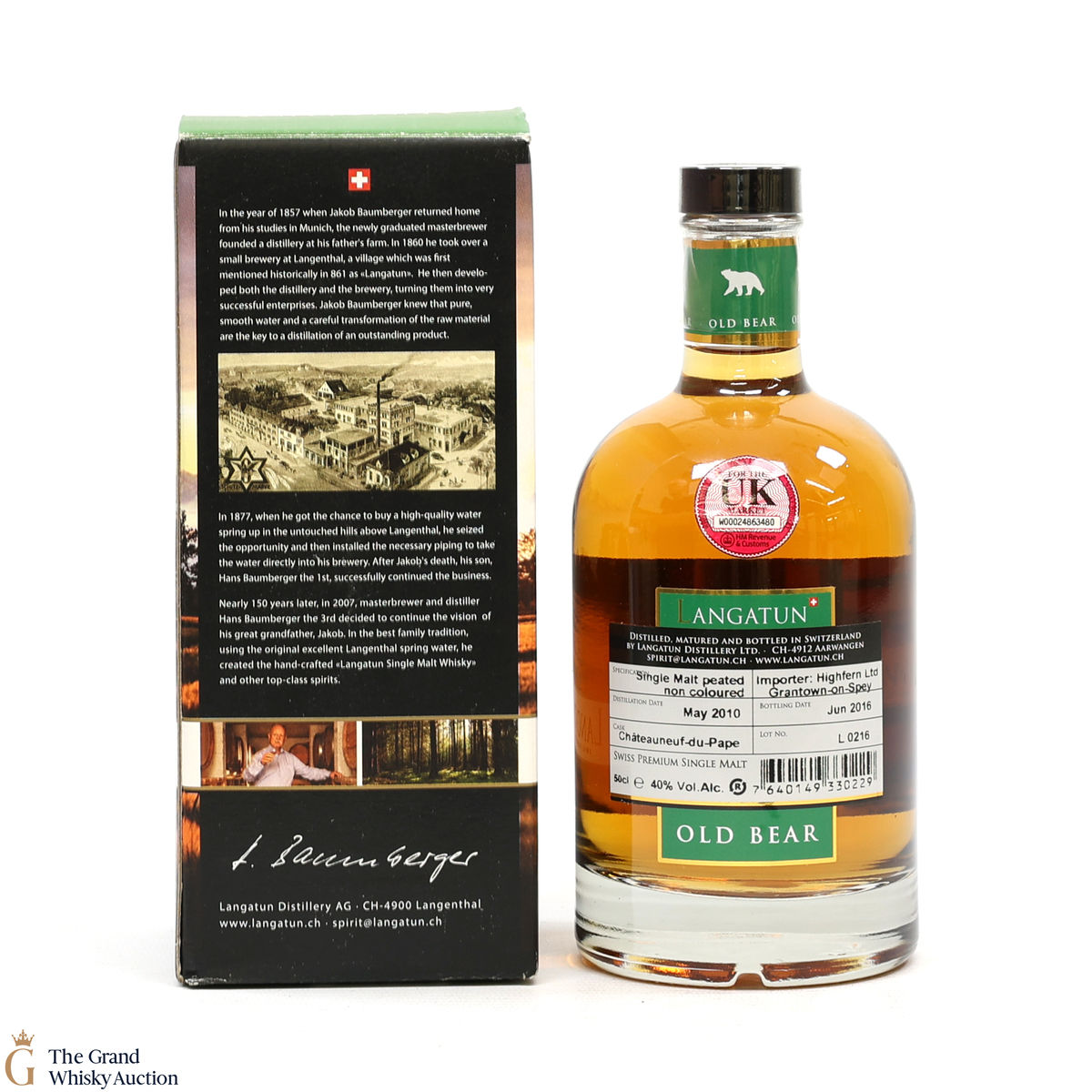 From Langatun Distillery in Switzerland, this single malt was distilled in May 2010 and bottled in June 2016, finished in Chāteauneuf-du-Pape casks.
