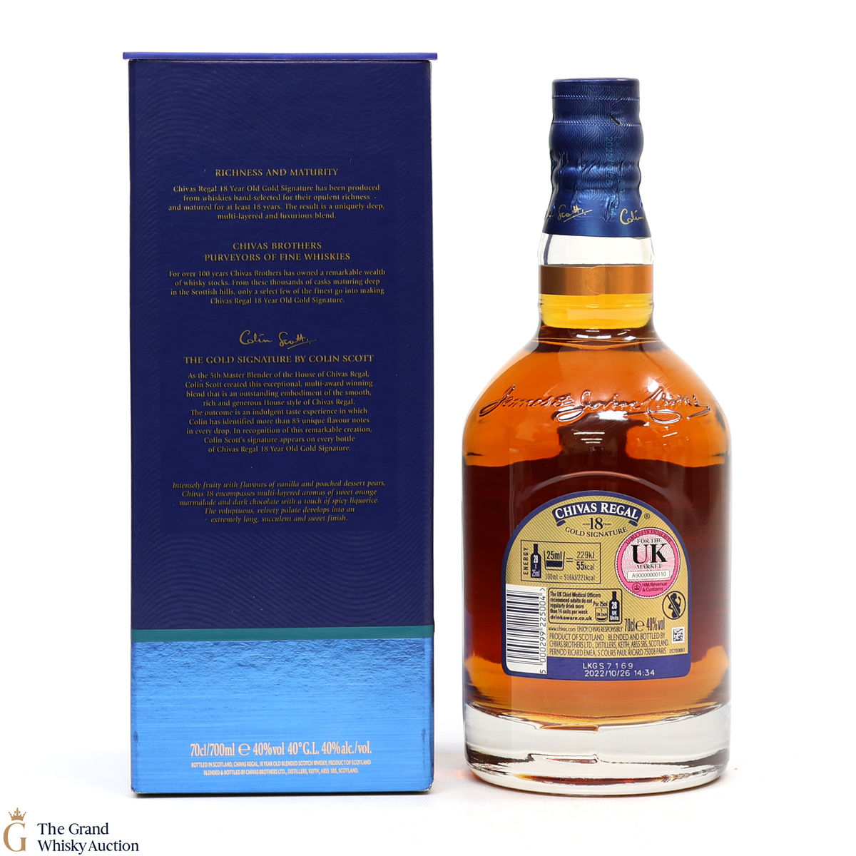 This is a 70cl bottling of Chivas Regal 18-Year-Old Gold Signature. The packaging and bottling code indicates that it was bottled in 2010.
