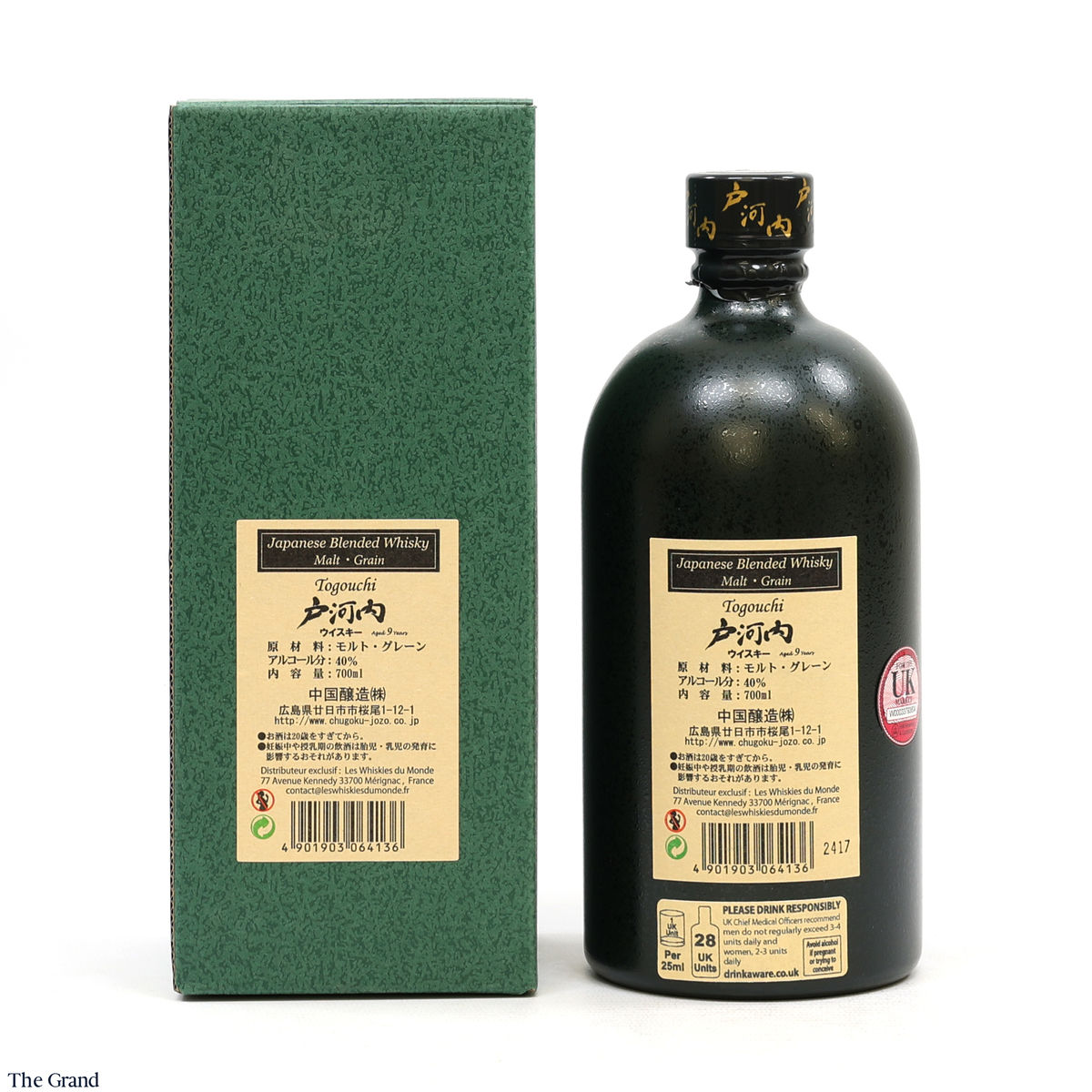 Due to the various ages of bottles and their seals, the condition of liquid is at the buyer's discretion and no claim can be lodged against failure/leakage in transit. Loss and breakage cover is available at 3% of the hammer price as standard. If the lot is not insured, no claim can be lodged against the courier or The Grand Whisky Auction for breakage or loss in transit.