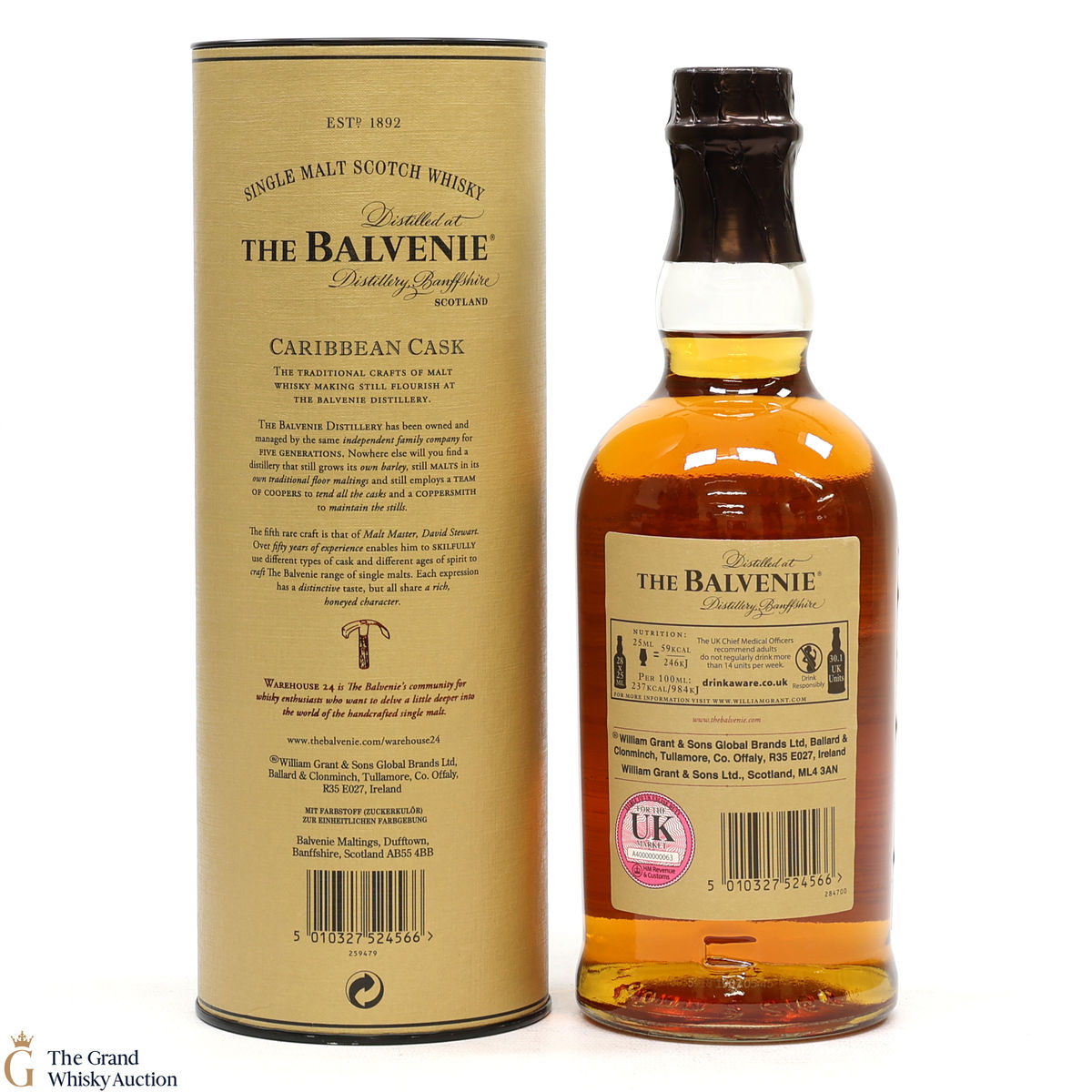 This lot is the famous Balvenie Caribbean Cask 14-year-old single malt whisky.