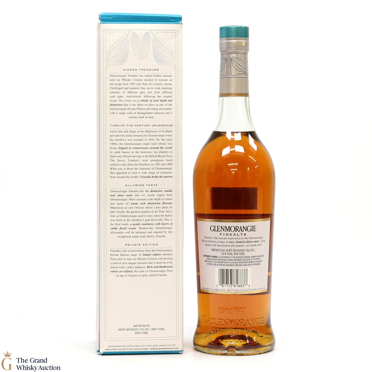 Finealta is the second in Glenmorangie's series of Private Editions (following Sonnalta). Finealta was produced using some lightly peated barley. The name is Gaelic for 'Elegance' and it was matured in ex-sherry & plain new American oak casks.