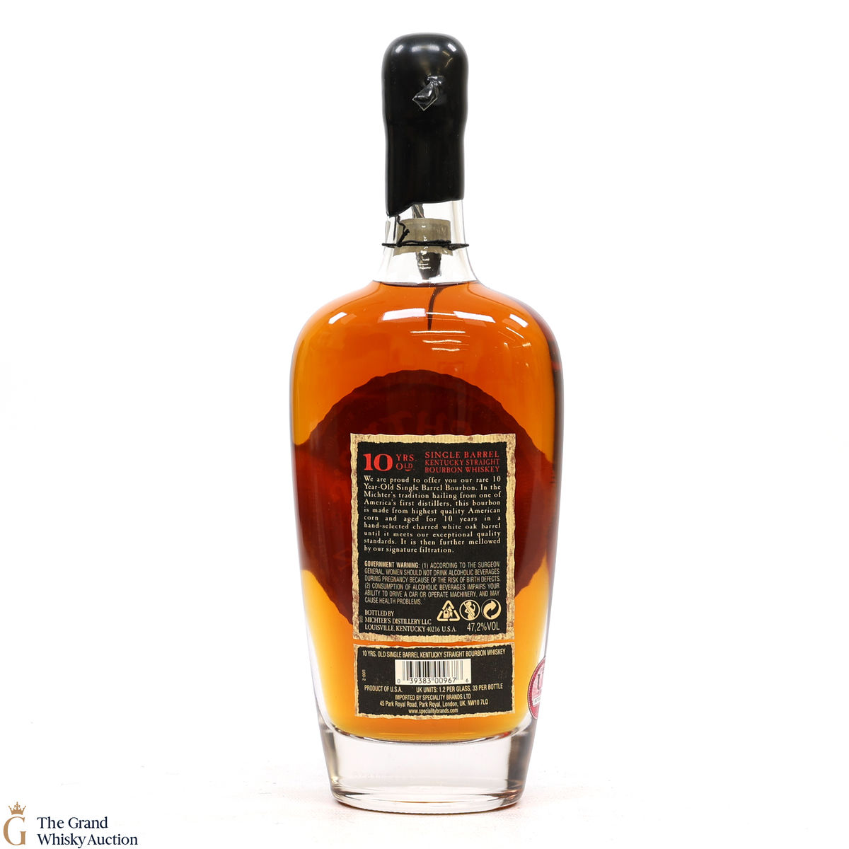 A single barrel Kentucky Bourbon Whiskey from Michter's, this spirit has been aged for 10 years in hand-selected charred white oak barrels.
