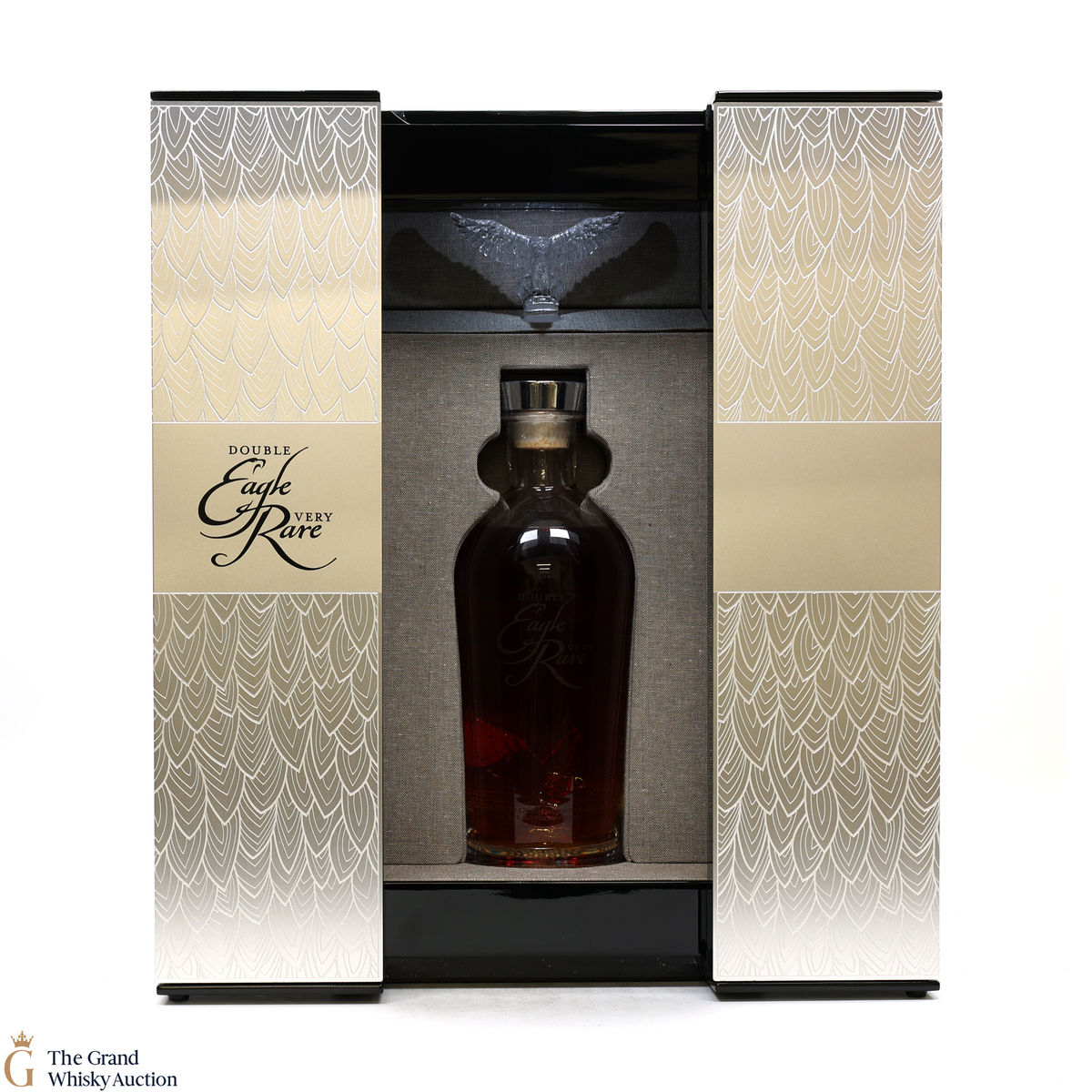 A striking and very limited edition bottling from Buffalo Trace Distillery, the double Eagle Very Rare is unique due to its crystal decanter with two eagles, one of which is inside the bottle itself. This bottle comes in a light-up wooded presentation box.