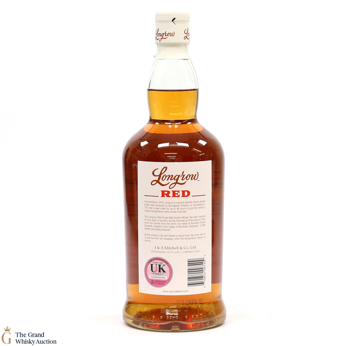Springbank Longrow Red, is always bottled at cask strength, is released annually in small quantities and every year a different type of red wine cask is used to mature the whisky.