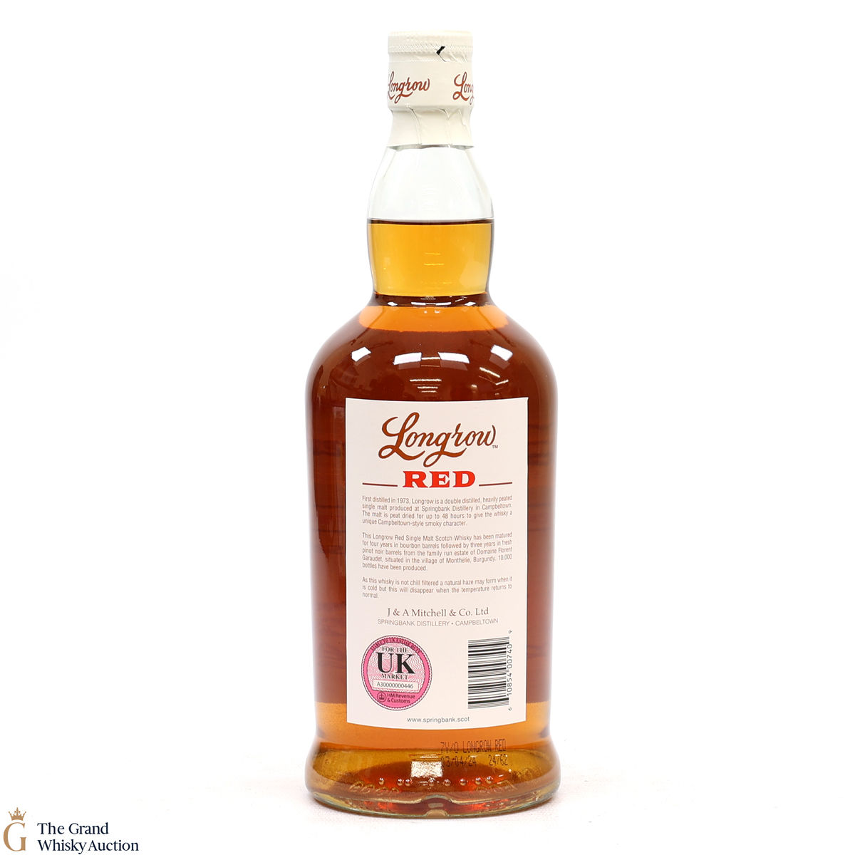 Springbank Longrow Red, is always bottled at cask strength, is released annually in small quantities and every year a different type of red wine cask is used to mature the whisky.