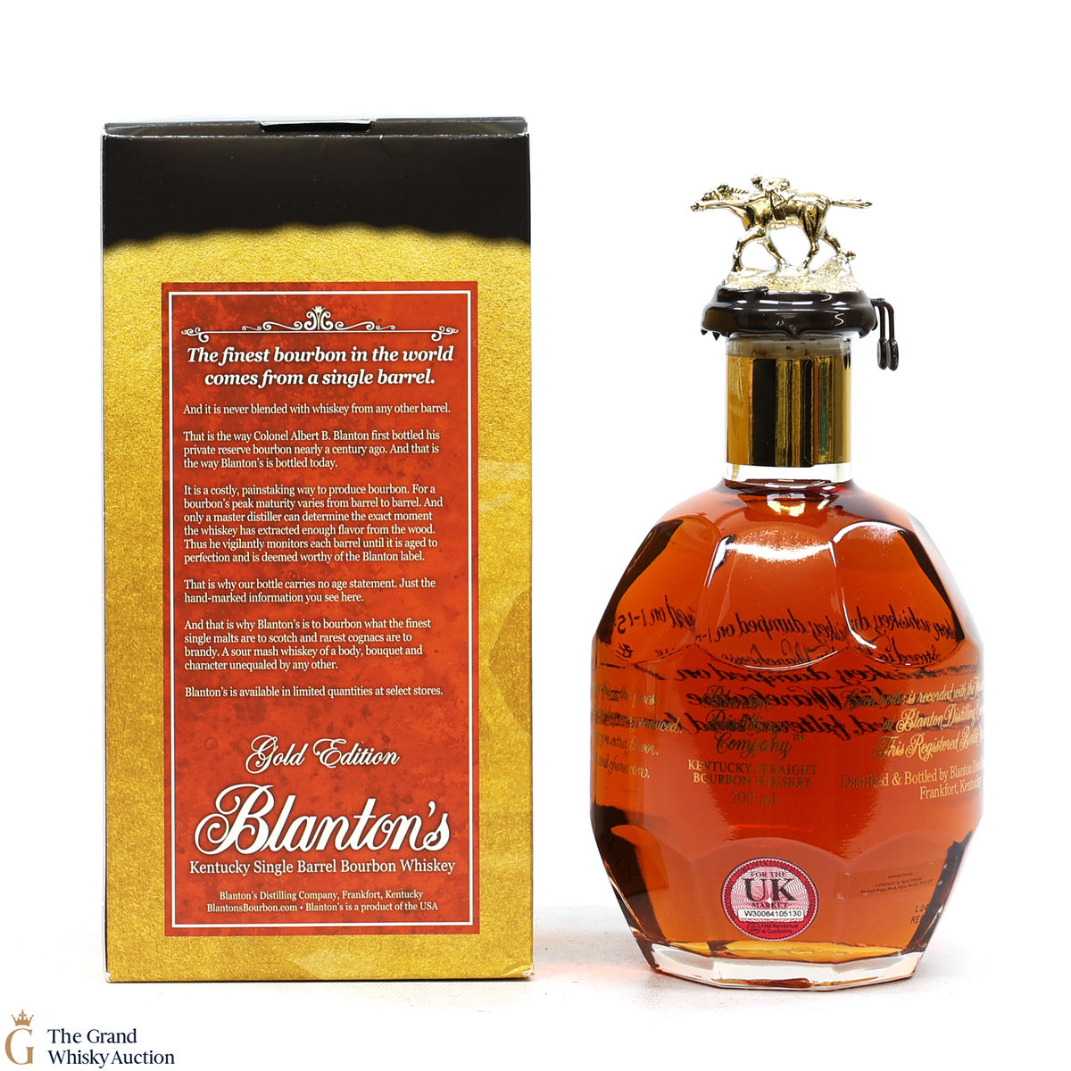 PLEASE NOTE: The wax seal on Blanton's bottles are prone to cracking in transit due to their design. Therefore, as stated in our T&C’s, we do not and will not accept liability should the seal be breached, broken, split or leak in transit. Additionally, please know due to the design of the internal cardboard packaging that surrounds the top of the bottles, it too may be torn. By bidding on this lot you have understood this to be true. Insurance is for complete breakage or loss in transit only.