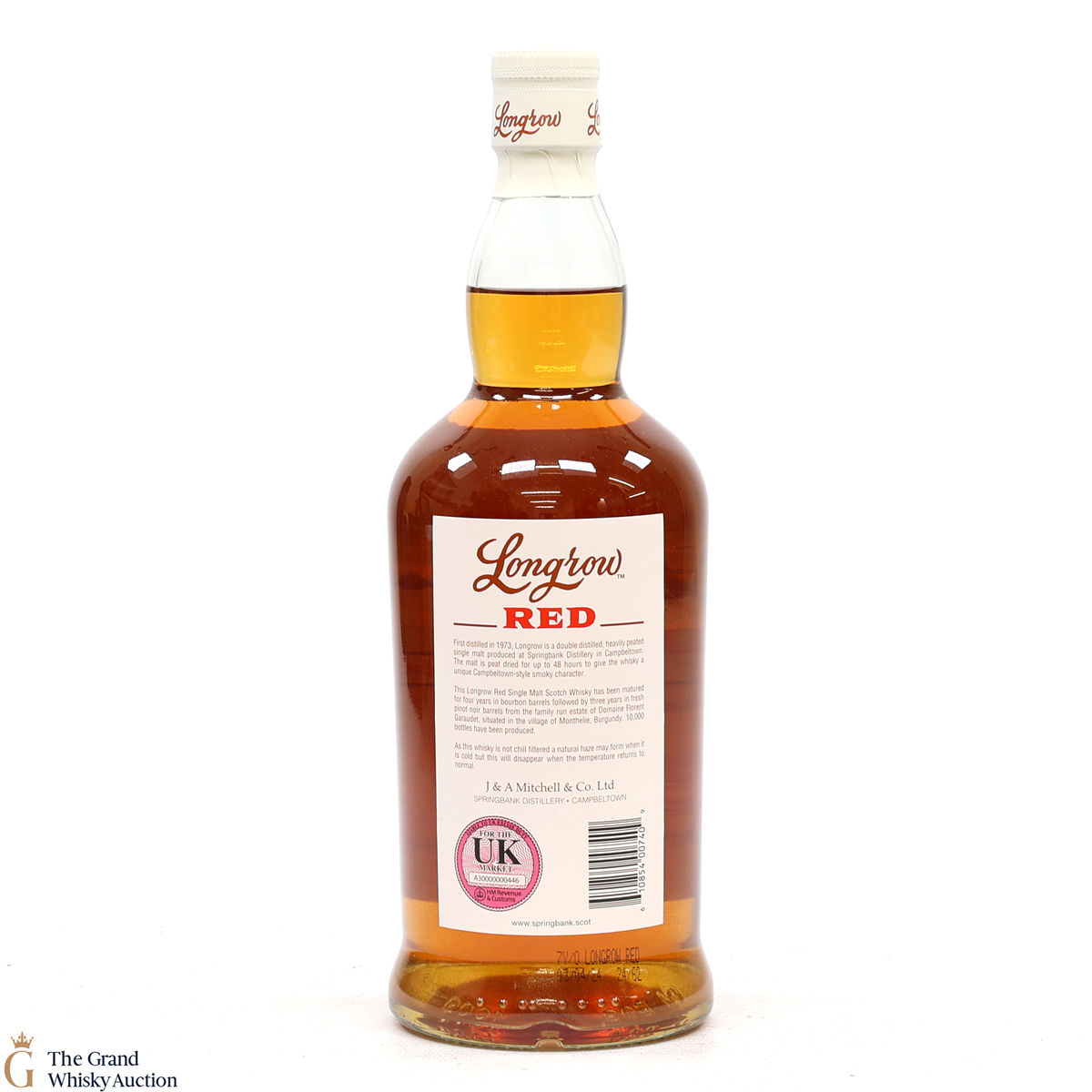 Springbank Longrow Red, is always bottled at cask strength, is released annually in small quantities and every year a different type of red wine cask is used to mature the whisky.