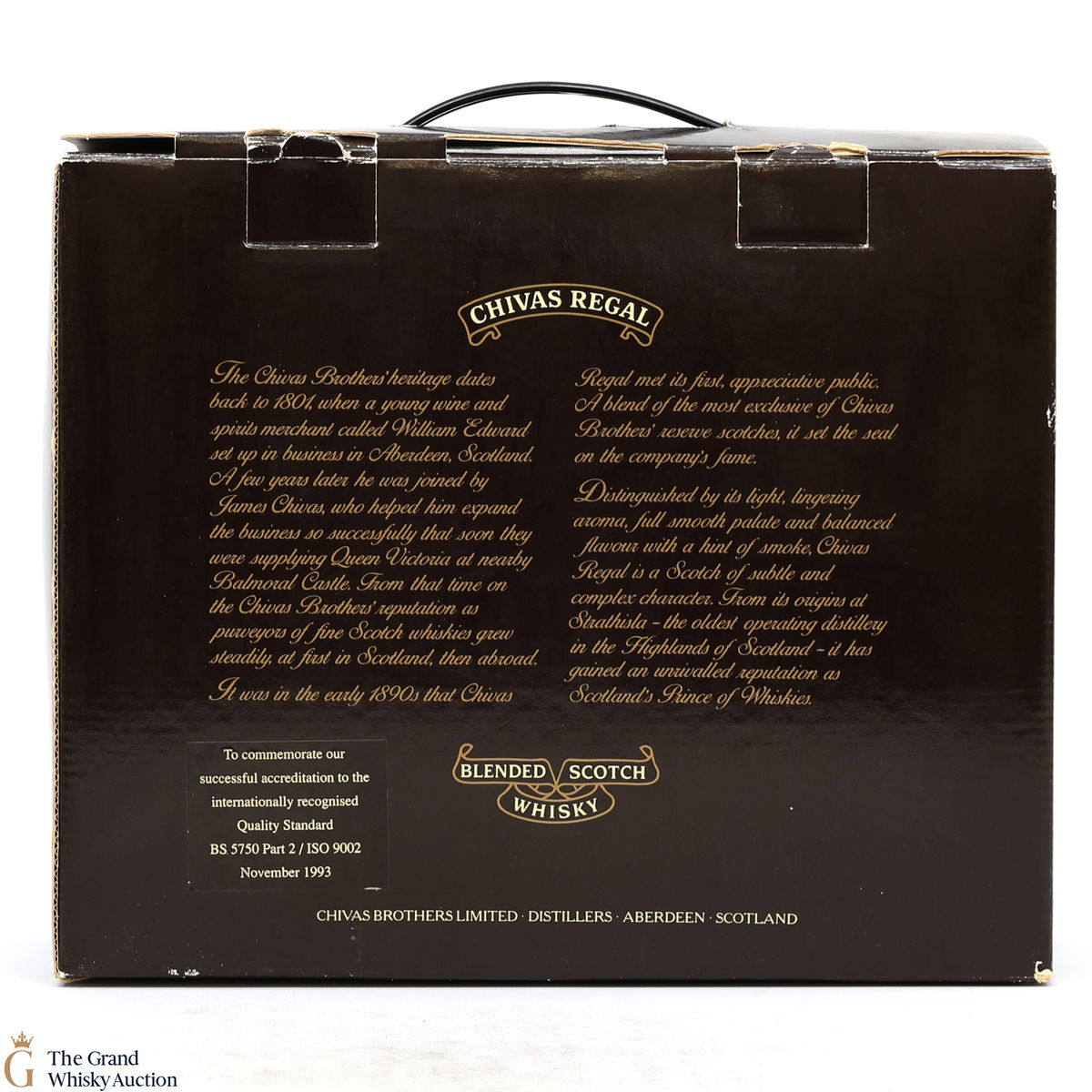 Due to the various ages of bottles and their seals, the condition of liquid is at the buyer's discretion and no claim can be lodged against failure/leakage in transit. Loss and breakage cover is available at 3% of the hammer price as standard. If the lot is not insured, no claim can be lodged against the courier or The Grand Whisky Auction for breakage or loss in transit.