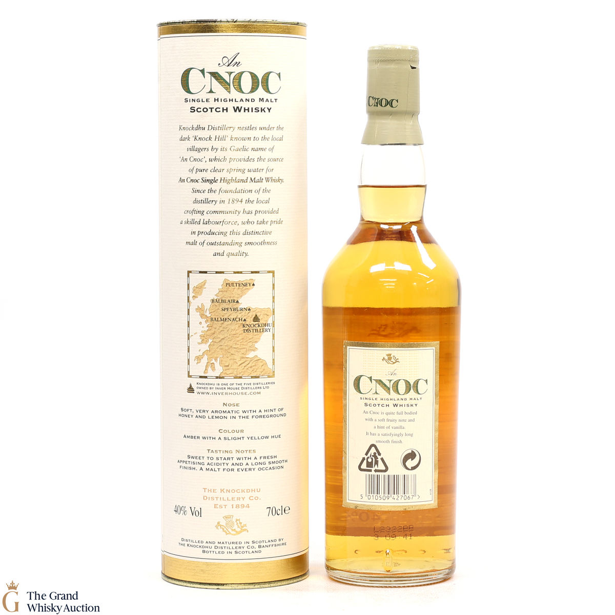 Founded by John Morrison, Knockdhu distillery has produced fine malt whisky since 1894, after the discovery of several springs of the purest water situated on the southern slopes of Knock Hill, 'Knockdhu' comes from the Gaelic word 'Cnoc Dubh' meaning black hill. The Speyside distillery was constructed by Distillers Company Limited with just two stills. John Haig & Sons had chosen the site, as a founding member of DCL, favouring the chosen placement due to the transport links and easy access to raw materials. Mothballed in 1983 due to the well-known ‘whisky loch’ surplus in the 80s. Soon after this, Inver House took over the distillery and produced the AnCnoc single malt rather than the distillery name as owners thought the successful Knockando to be too similar. Today, the distillery has an established core range including a 12, 16 and 21-year-old as well as the odd annual vintage release.