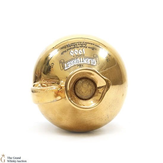 This is a handsome, old release of 1966 vintage Glenturret whisky, presented in a Gold ceramic flagon. This single malt was distilled in 1966 and bottled in 1987 to this gold coloured flagon making the whisky inside at least 20 years old. This is an individually numbered bottle.