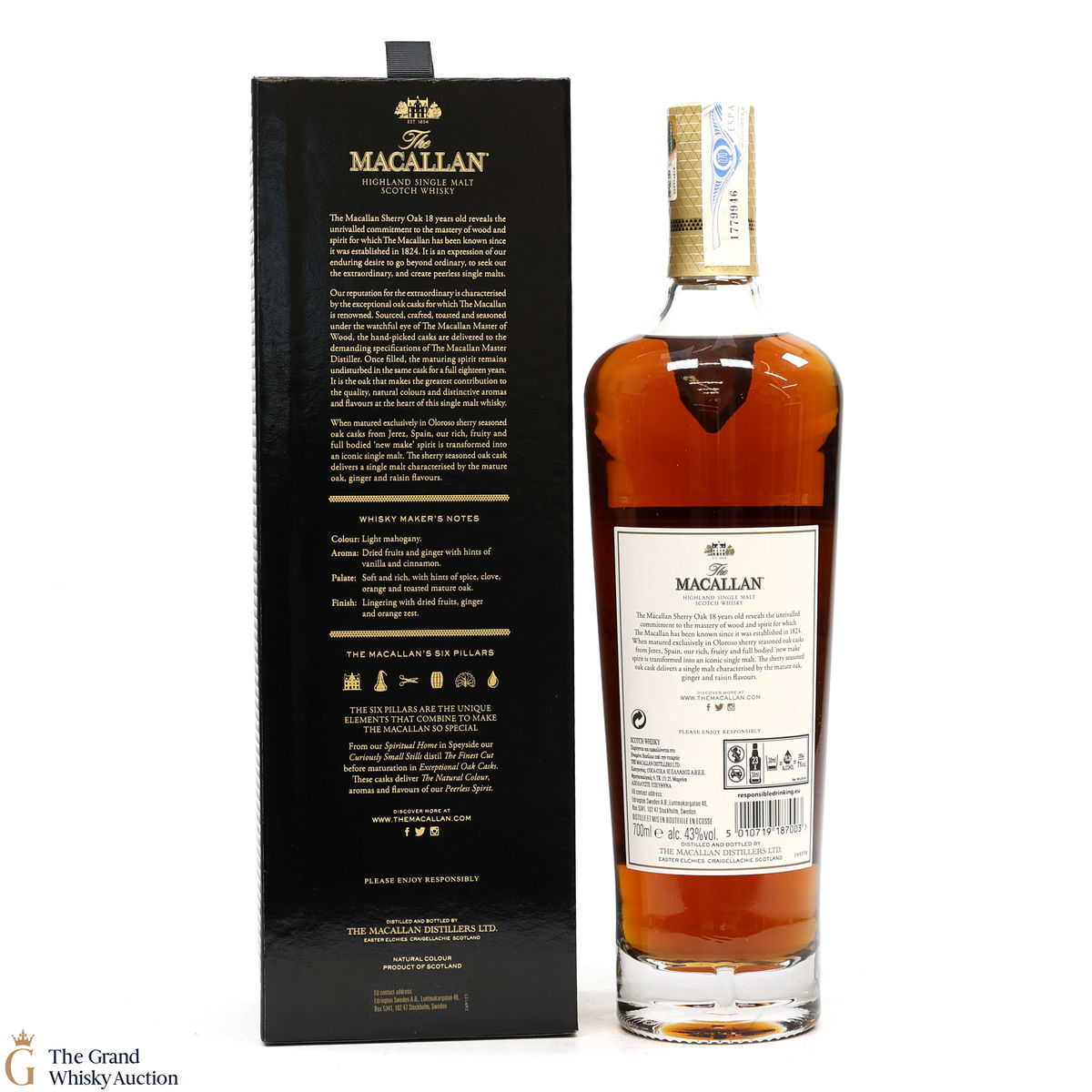 This annual release of The Macallan's popular 18 Year Old Sherry Oak is matured exclusively in sherry-seasoned casks, built from both Spanish and American oak, providing a beautifully dark flavour with rich aromas.