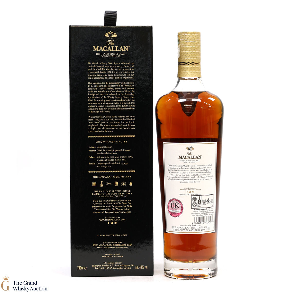 This annual release of The Macallan's popular 18 Year Old Sherry Oak is matured exclusively in sherry-seasoned casks, built from both Spanish and American oak, providing a beautifully dark flavour with rich aromas.