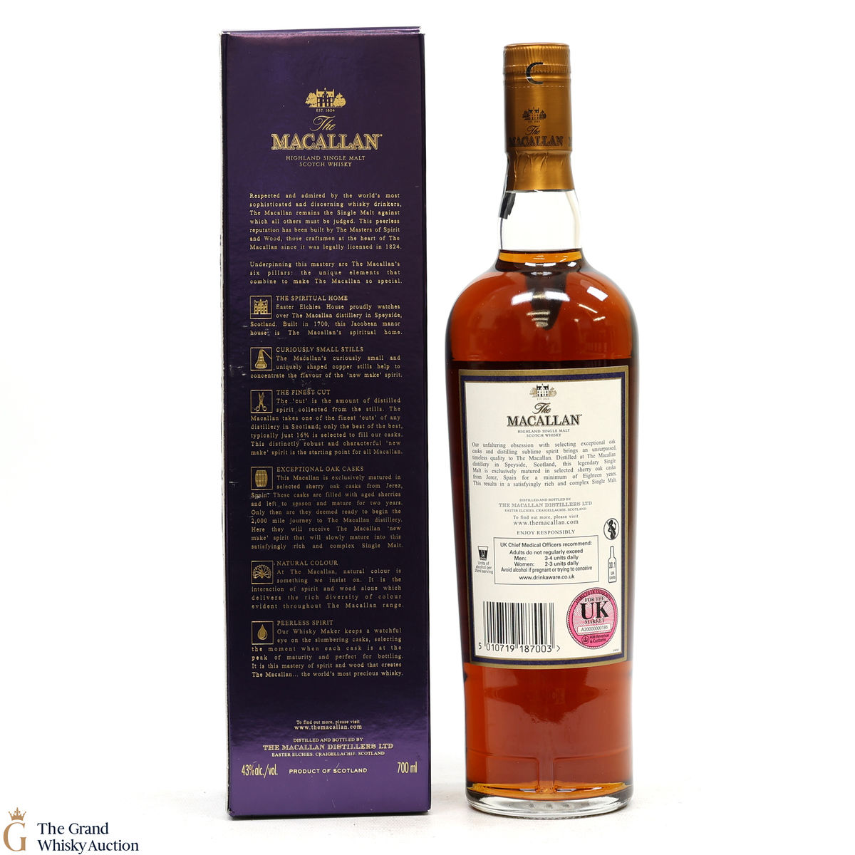 Due to the various ages of bottles and their seals, the condition of liquid is at the buyer's discretion and no claim can be lodged against failure/leakage in transit. Loss and breakage cover is available at 3% of the hammer price as standard. If the lot is not insured, no claim can be lodged against the courier or The Grand Whisky Auction for breakage or loss in transit.