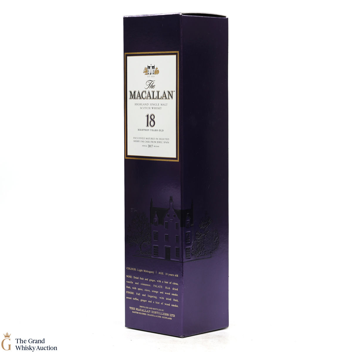 This Macallan 18 Year Old Single malt was bottled in 2017 in Speyside Scotland. This classic was one of the last bottles in this shape. It is now becoming rarer and a staple item in a collector's cellar!
