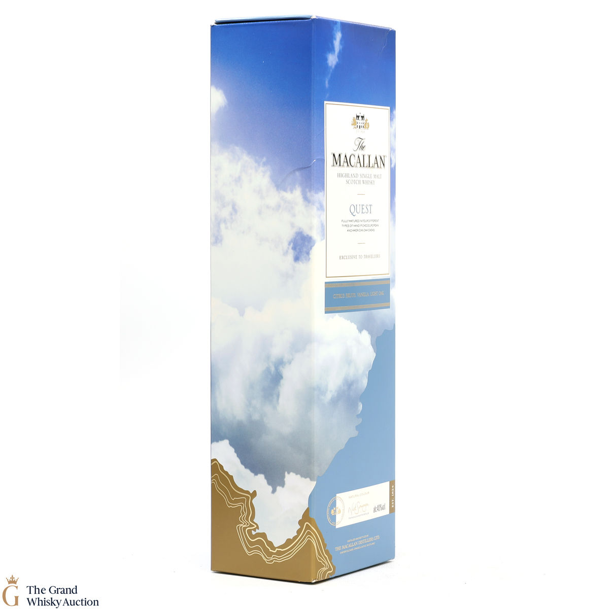 The Quest packaging has a blue sky which is said to symbolise 'the start of the journey where the world is a canvas and the sky is the limit' for Macallan.