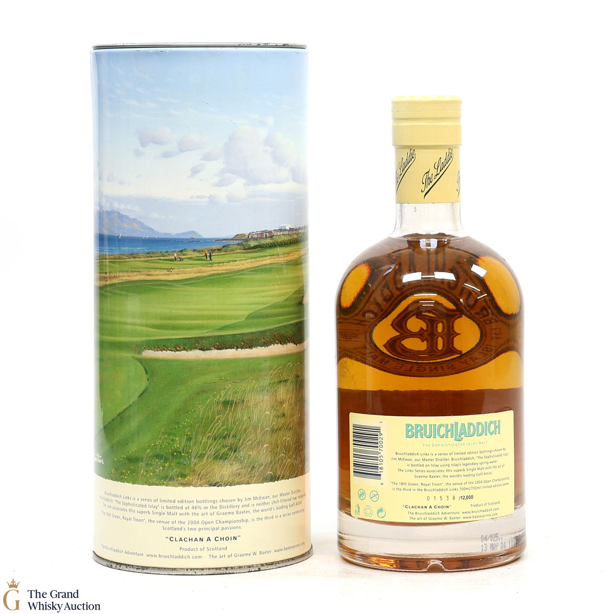 This bottling was the third release in the Bruichladdich Links collection. This 14-year-old single malt depicts Royal Troon, the 18th Green - the venue for the 2004 Open Championship.