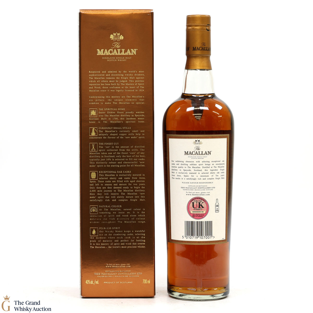 Distilled at the world-renowned Macallan Distillery in Speyside, this single malt was matured exclusively in sherry oak casks from Jerez, Spain. It was aged for a total of 10 years prior to bottling at a strength of 40% ABV.