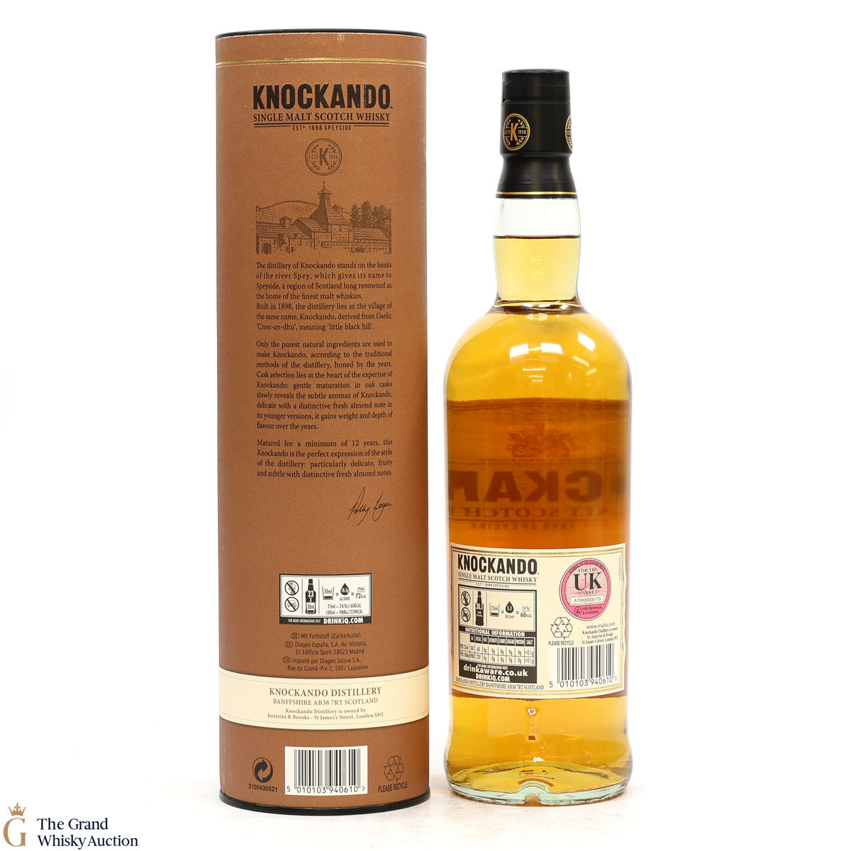 Knockando in Gaelic means 'little black hill'. The Knockando distillery is based in Speyside, Scotland. Matured in ex-bourbon barrels and bottled at 43%, this 12-year-old expression is an ongoing release that used to display a vintage.