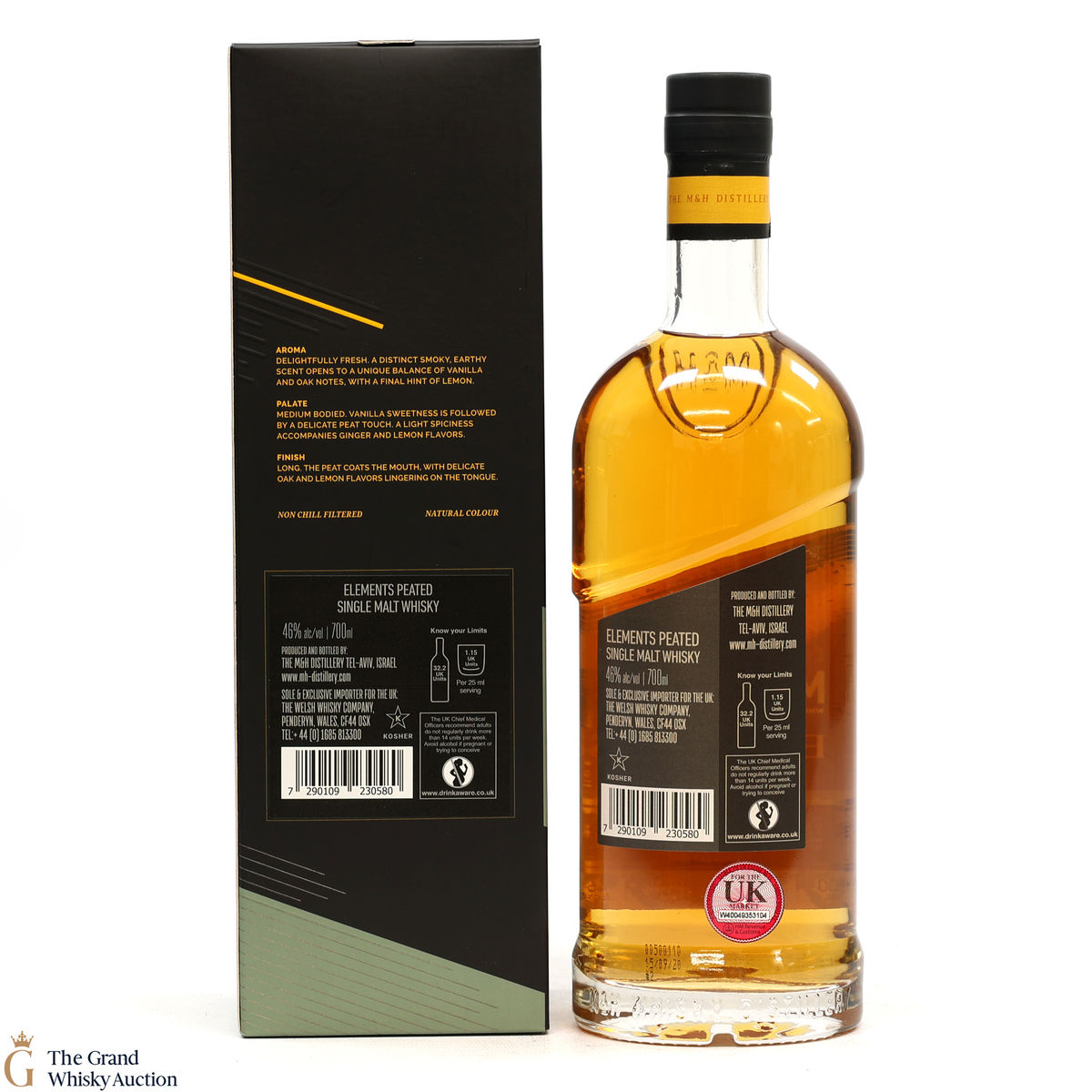 Milk & Honey - Elements Peated: An Israeli whisky from Milk & Honey Distillery's Elements series that has been matured in ex-peated whisky casks from Islay, as well as ex-bourbon casks.