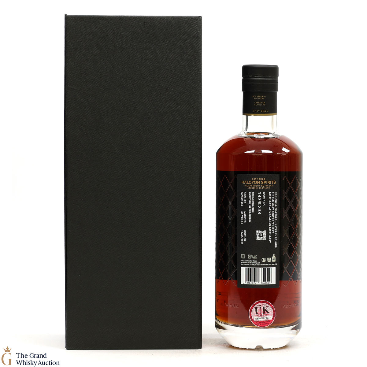 This is a single malt from the Macallan Distillery, distilled in 1993 and matured for 30 years, this is a non-chill filtered and natural colour expression. Bottled in 2023 at a strength of 49.8% ABV by Halycon Spirits Aberdeen.