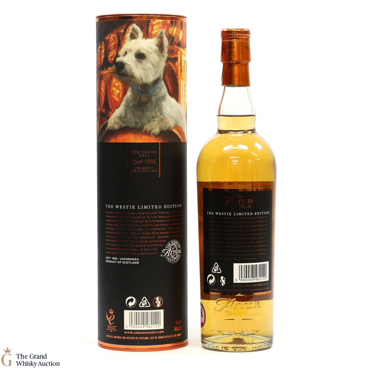 This limited edition is the third in the Icons of Arran series, this bottle depicts Ruaraidh, Arran's beloved westie.