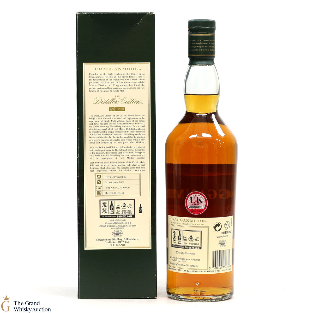 Due to the various ages of bottles and their seals, the condition of liquid is at the buyer's discretion and no claim can be lodged against failure/leakage in transit. Loss and breakage cover is available at 3% of the hammer price as standard. If the lot is not insured, no claim can be lodged against the courier or The Grand Whisky Auction for breakage or loss in transit.