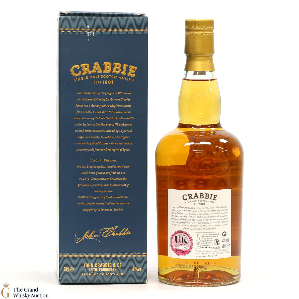 Crabbie has followed in his footsteps with this outstanding 15-year-old single malt whisky. Distilled at a prestigious unnamed Highland distillery, it was matured in ex-sherry casks from the Jerez region of Spain.