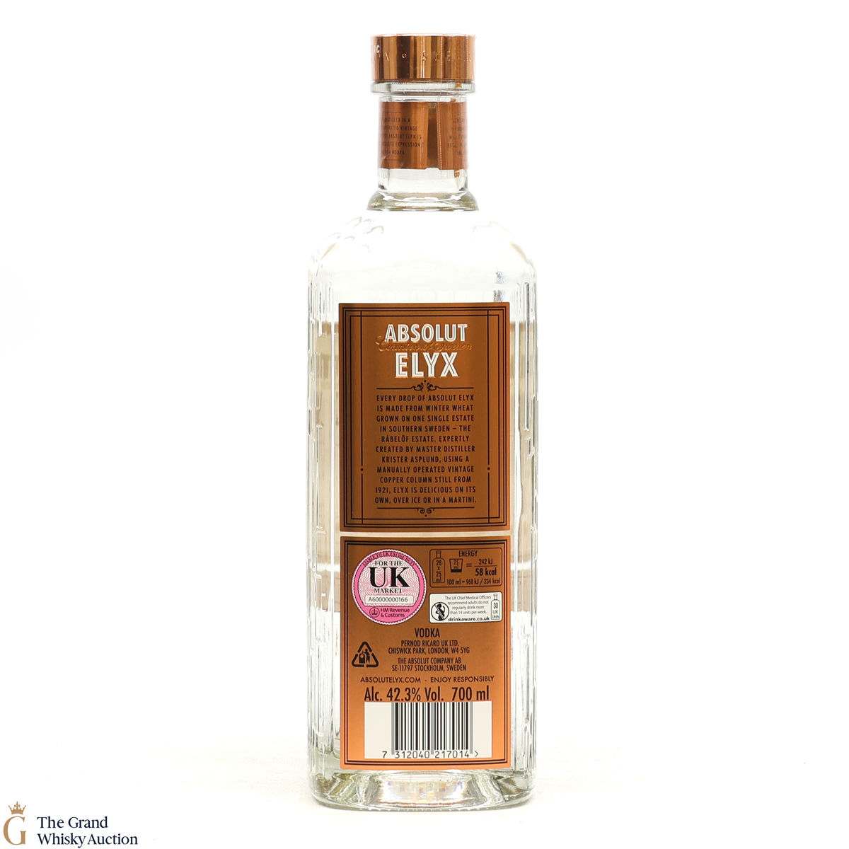 Absolut Elyx Vodka is a luxury expression distilled from single estate winter wheat, manually operated copper stills.