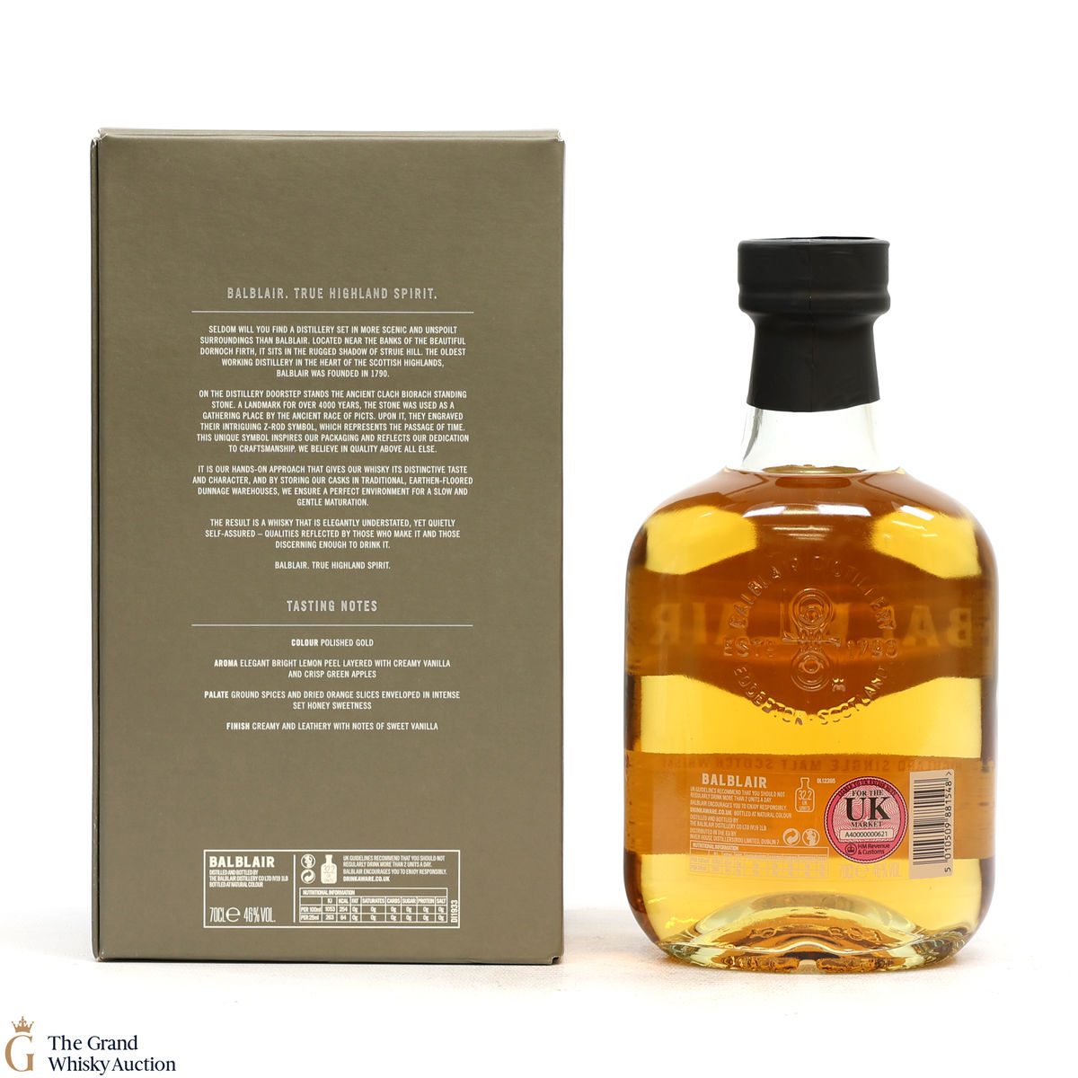 A 12-Year-Old Balbalir single malt. Balblair distillery was built in 1790 by the Ross family and in 1872 they moved to a new site in order to make use of the newly built railway between Wick and Inverness.