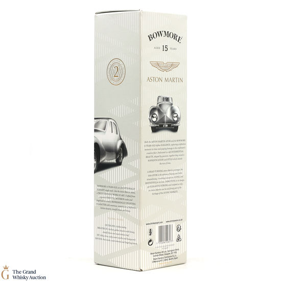 Edition 2 of the Bowmore x Aston Martin collaboration celebrates the iconic Aston Martin 1939 Atom. A working concept car, iconic and definitive for its time. A great pairing for the golden and elegant 15 Year Old, married in 1st fill bourbon casks to create a refreshing, silky peat-smoked character with notes of citrus. Bottled at 43% ABV.