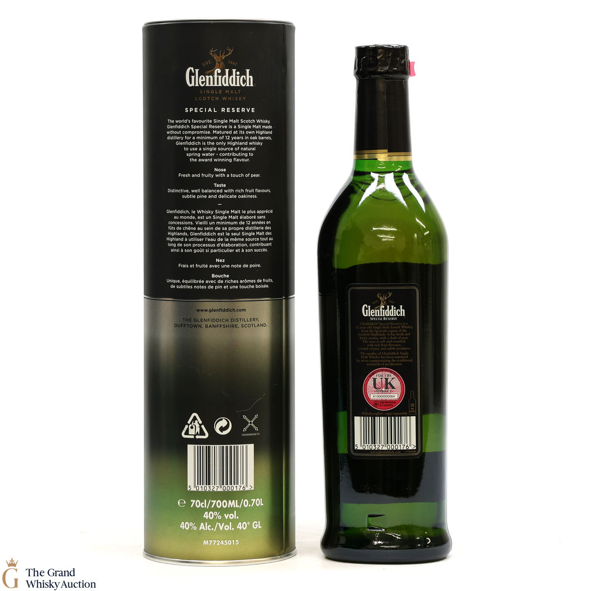 Due to the various ages of bottles and their seals, the condition of liquid is at the buyer's discretion and no claim can be lodged against failure/leakage in transit. Loss and breakage cover is available at 3% of the hammer price as standard. If the lot is not insured, no claim can be lodged against the courier or The Grand Whisky Auction for breakage or loss in transit.