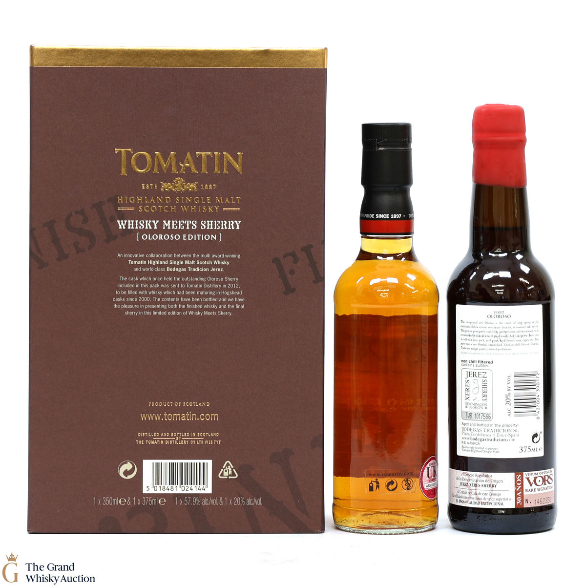 This lot includes 2 x 35cl bottlings. Bodegas Tradición Jerez has joined forces with Tomatin to present this limited-edition whisky and sherry case.