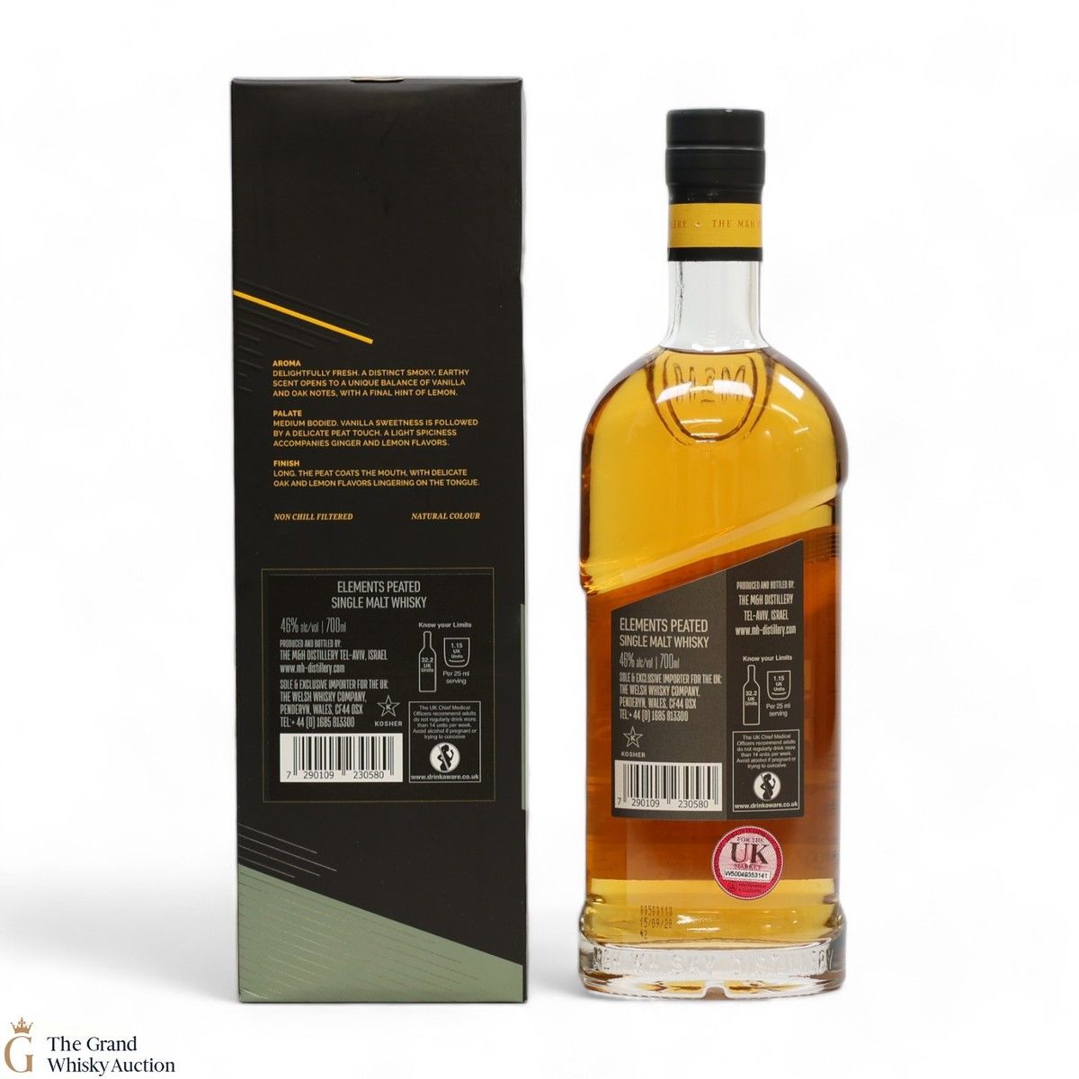 Milk & Honey - Elements Peated: An Israeli whisky from Milk & Honey Distillery's Elements series that has been matured in ex-peated whisky casks from Islay, as well as ex-bourbon casks.