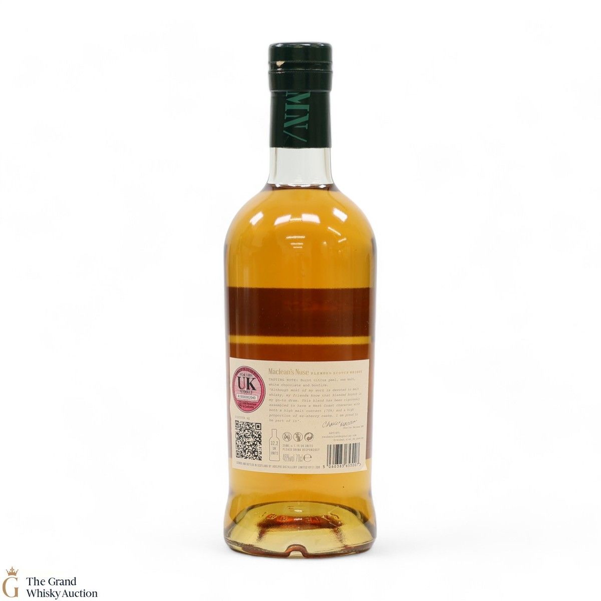 Due to the various ages of bottles and their seals, the condition of liquid is at the buyer's discretion and no claim can be lodged against failure/leakage in transit. Loss and breakage cover is available at 3% of the hammer price as standard. If the lot is not insured, no claim can be lodged against the courier or The Grand Whisky Auction for breakage or loss in transit.