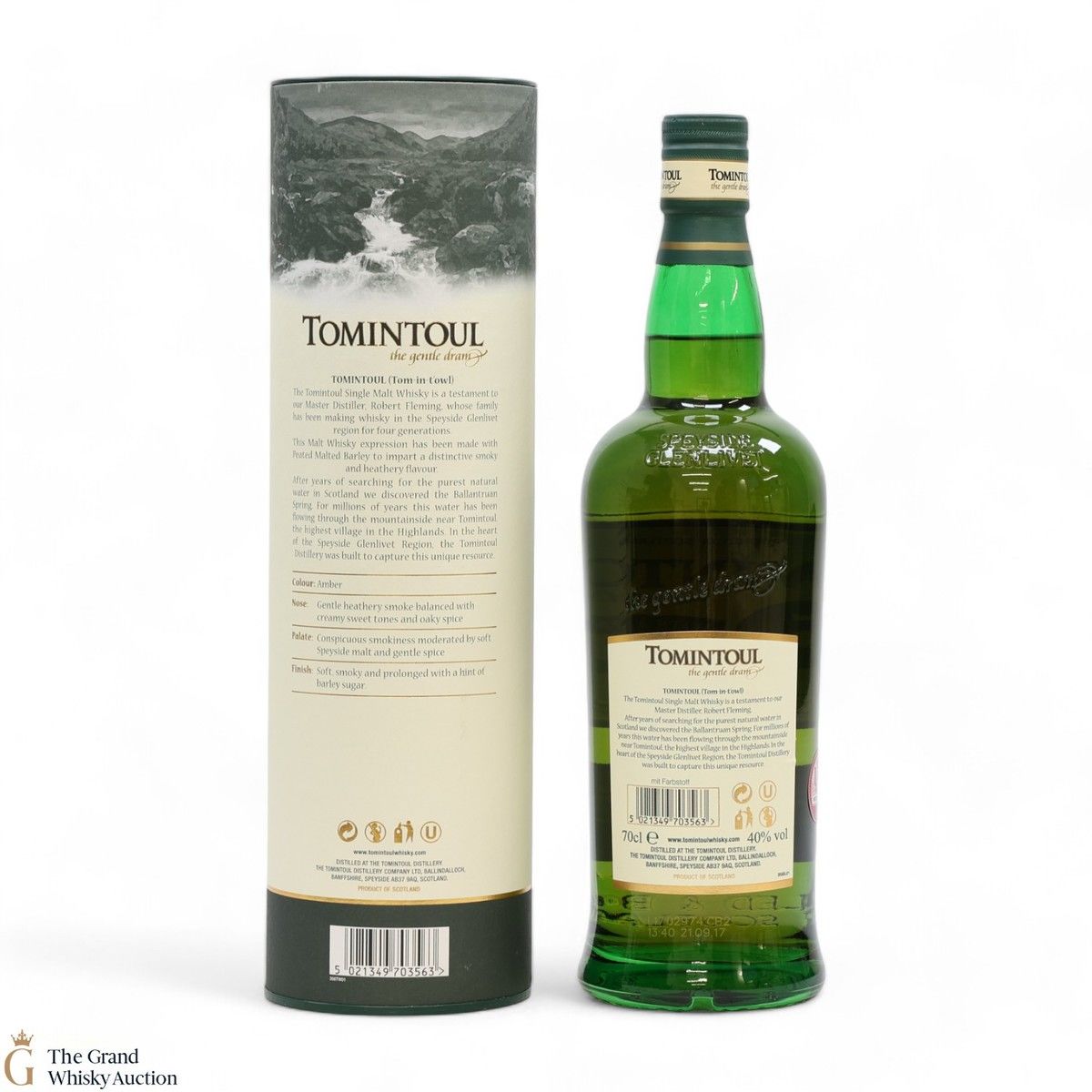 A 15-year-old single malt expression from Tomintoul, aged in hand-picked oak barrels. This Speyside single malt Scotch whisky was distilled using peated malted barley at Tomintoul Distillery, giving a 'Peaty Tang'