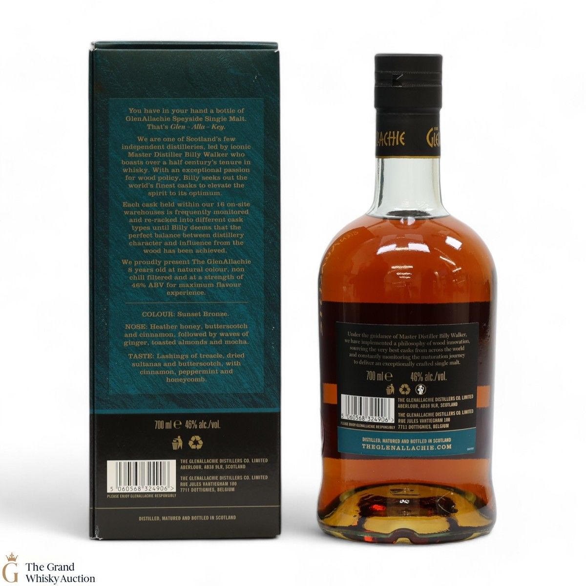 Released as part of their core range, The GlenAllachie 8-year-old was created from a combination of Pedro Ximénez and Oloroso sherry puncheons along with a small quantity of Virgin Oak casks and red wine barriques. The resulting bronze spirit delivers sherry-matured sophistication.