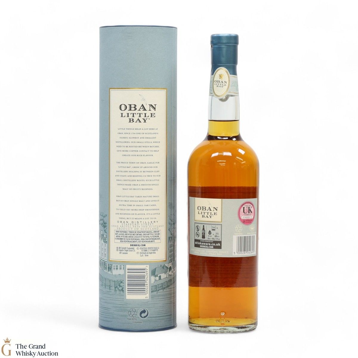 Oban Little Bay then matured in refill American oak hogsheads, European oak Sherry casks and refill casks with new ends before being married in the smallest casks available at the distillery, 200-litre ex-bourbon barrels.