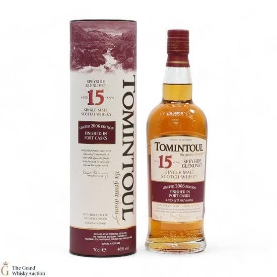 A limited-edition 15-year-old single malt expression from Tomintoul, distilled in ex-bourbon American Oak casks and later finished in Port pipe casks. This is one of 9,762 bottles.