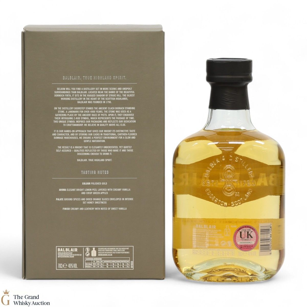 A 12-Year-Old Balbalir single malt. Balblair distillery was built in 1790 by the Ross family and in 1872 they moved to a new site in order to make use of the newly built railway between Wick and Inverness.