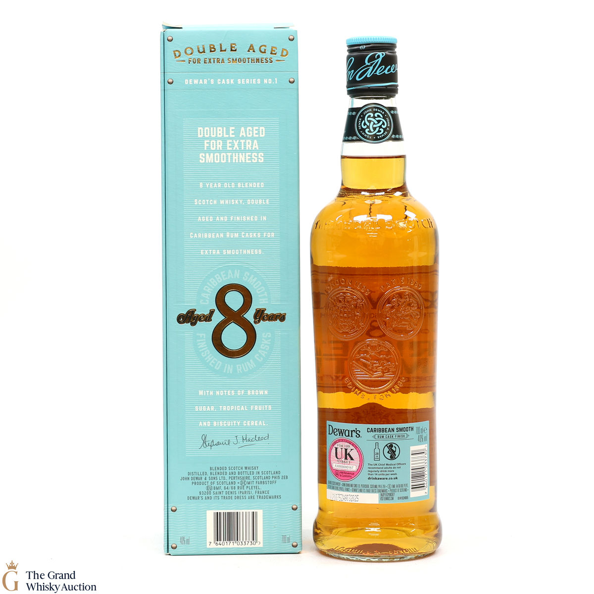 Part of Dewar's Cask Series, this is a Caribbean smooth blended scotch whisky matured for 8 years. Double-aged and finished in Caribbean rum casks for extra smoothness.
