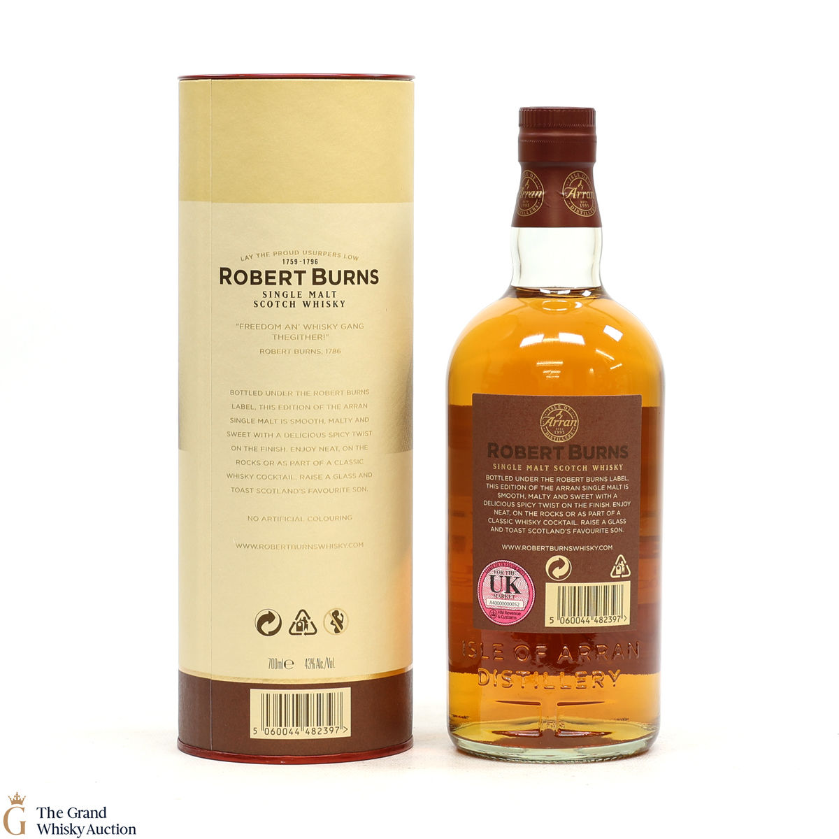 Bottled under the Robert Burns label this bottling of the Arran Single Malt is smooth, malty and sweet with a delicious spicy twist on the finish. "Raise a glass and toast Scotland favourite son."