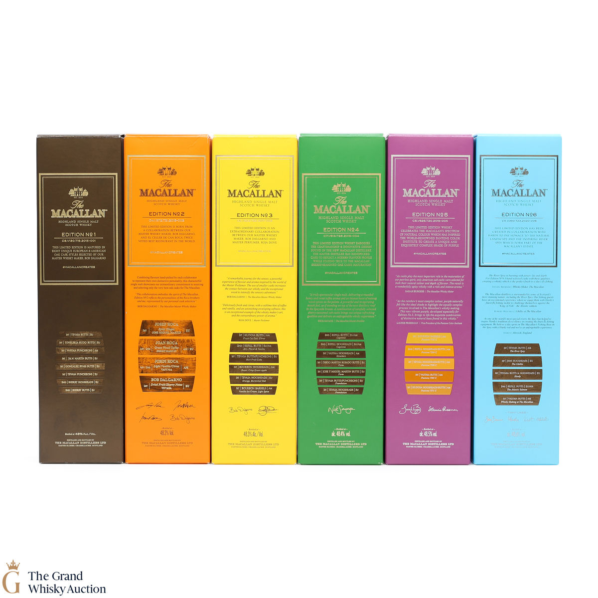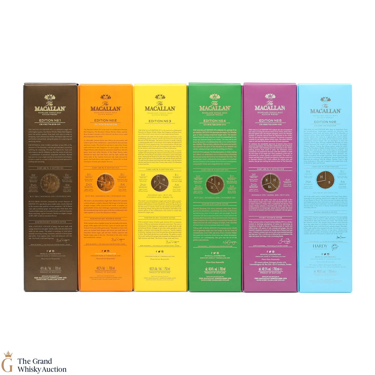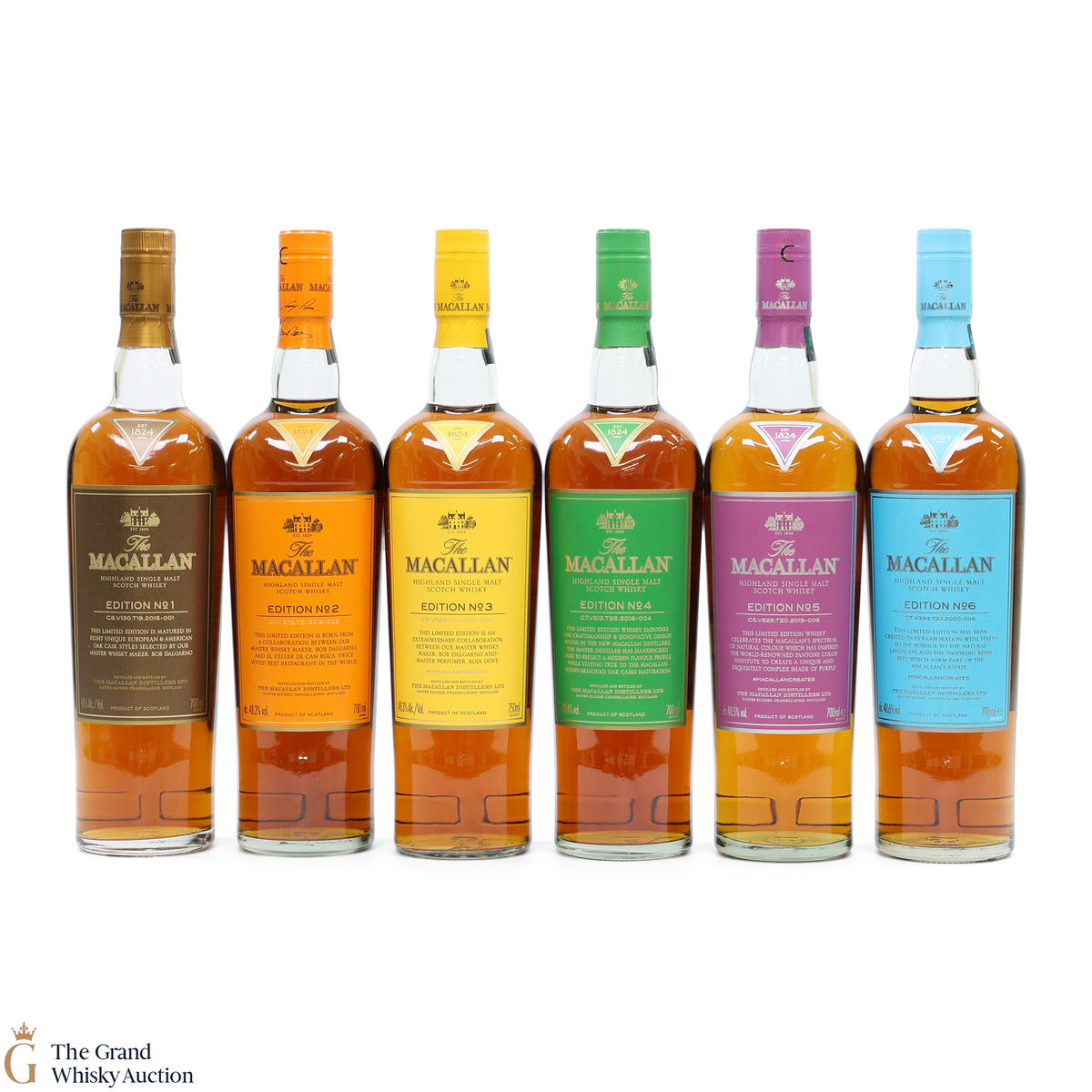 This lot brings together the Macallan Edition set, comprising Edition No.1-6 in the annual limited edition series 2015-2020.