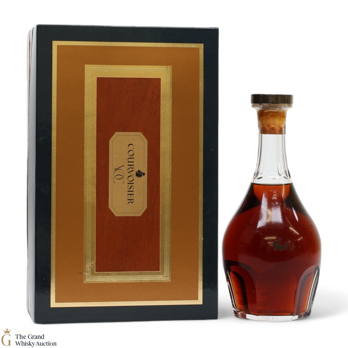 An old Courvoisier VOC champagne cognac in a decanter from France's Baccarat.