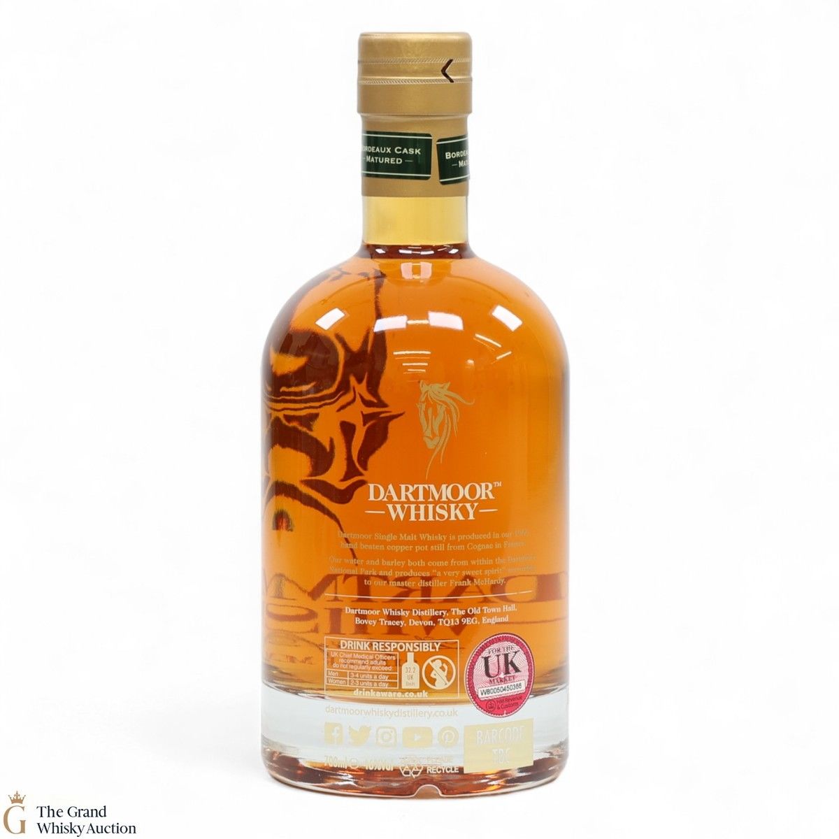 This bottling is the second distillation and is the first-ever expression of their Bordeaux red wine cask aged whisky, matured in a single cask. Cut with pure Dartmoor spring water and signed by our Master Distiller, Frank McHardy and both founders.