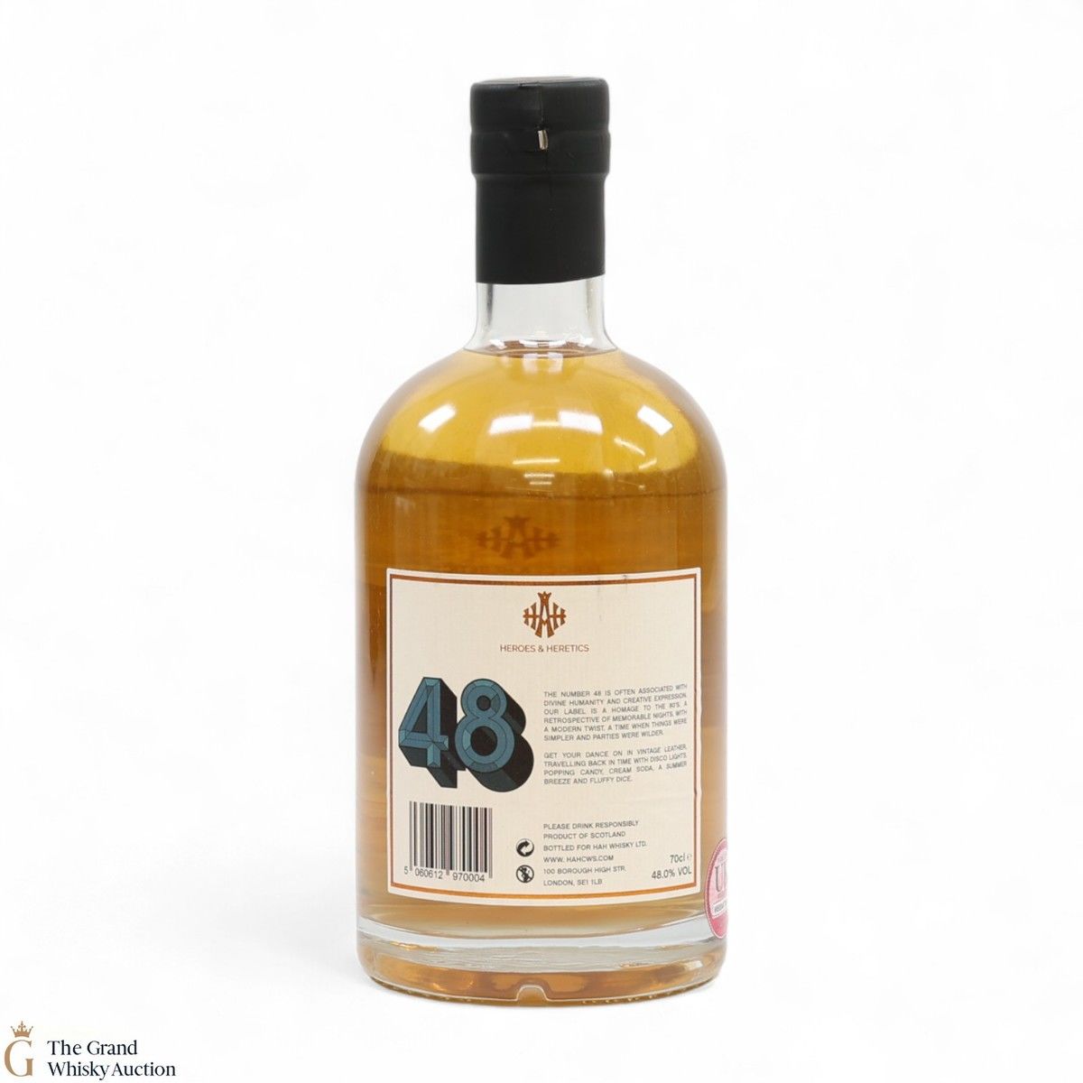This 10-year-old single sherry cask blended malt Scotch whisky is from Heroes & Heretics. The number 48 is often associated with divine humanity and creative expression. Our label is a homage to the 80’s. A retrospective to memorable nights, with a modern twist.