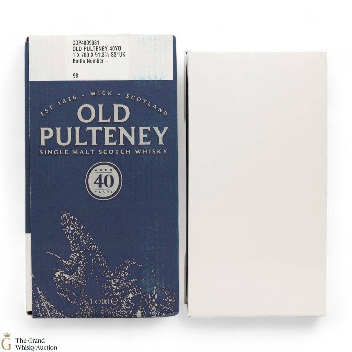 This is a very handsome 40-year-old from Old Pulteney indeed. This single malt was drawn from 3 sherry casks and a single bourbon barrel, that were all filled in 1968. The bottle is hand-blown and decorated with silver waves blown across the glass while the metal was molten. It is capped with a polished stone stopper and it comes in a striking presentation case.