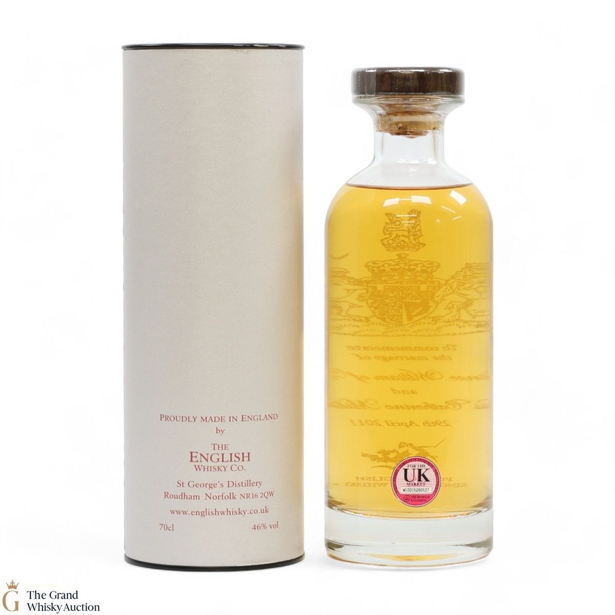 A limited-edition decanter produced by The English Whisky Company commemorates the marriage of Prince William of Wales and Miss Catherine Middleton.