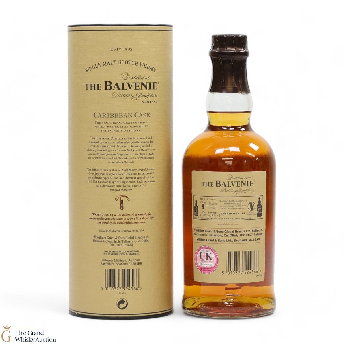 This lot is the famous Balvenie Caribbean Cask 14-year-old single malt whisky.