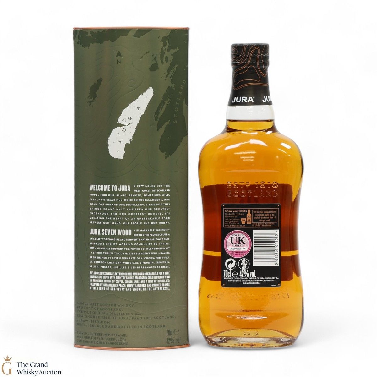 Jura can be found but a few miles from the west coast of Scotland. This particular bottling is influenced by seven select French and American Oak barrels for a rare balance of sweet and smoke.