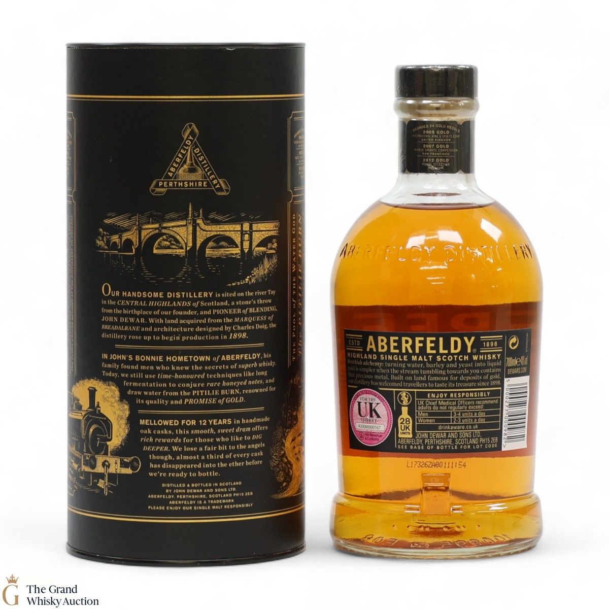 Due to the various ages of bottles and their seals, the condition of liquid is at the buyer's discretion and no claim can be lodged against failure/leakage in transit. Loss and breakage cover is available at 3% of the hammer price as standard. If the lot is not insured, no claim can be lodged against the courier or The Grand Whisky Auction for breakage or loss in transit.